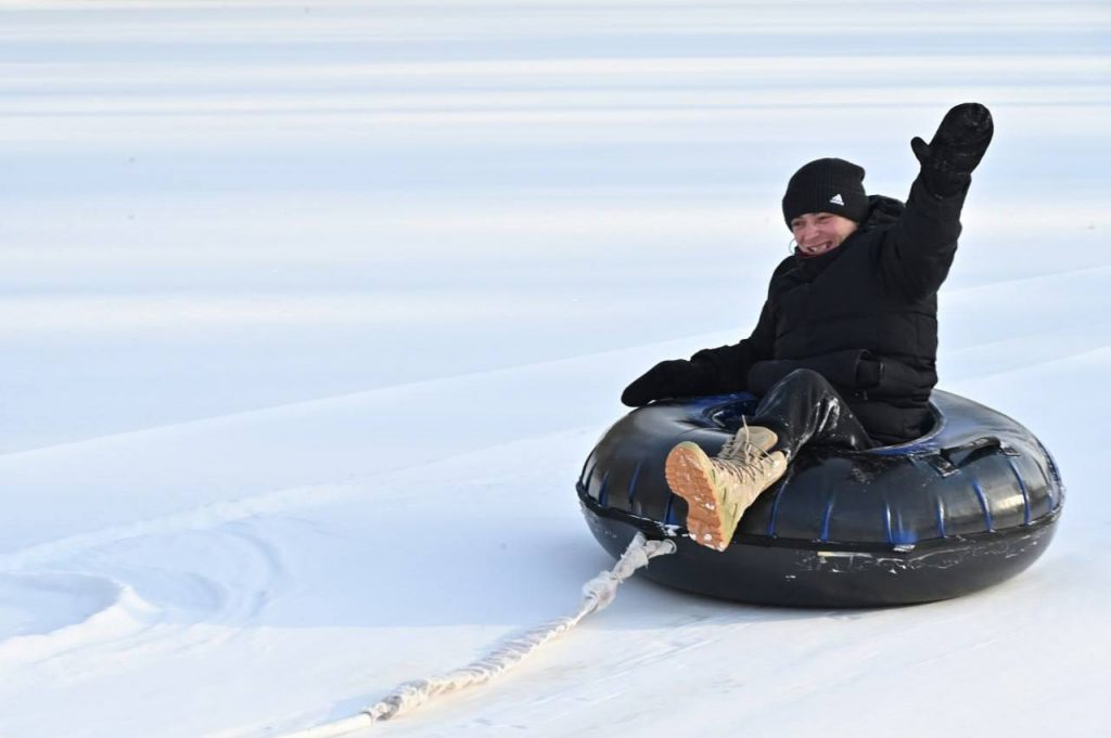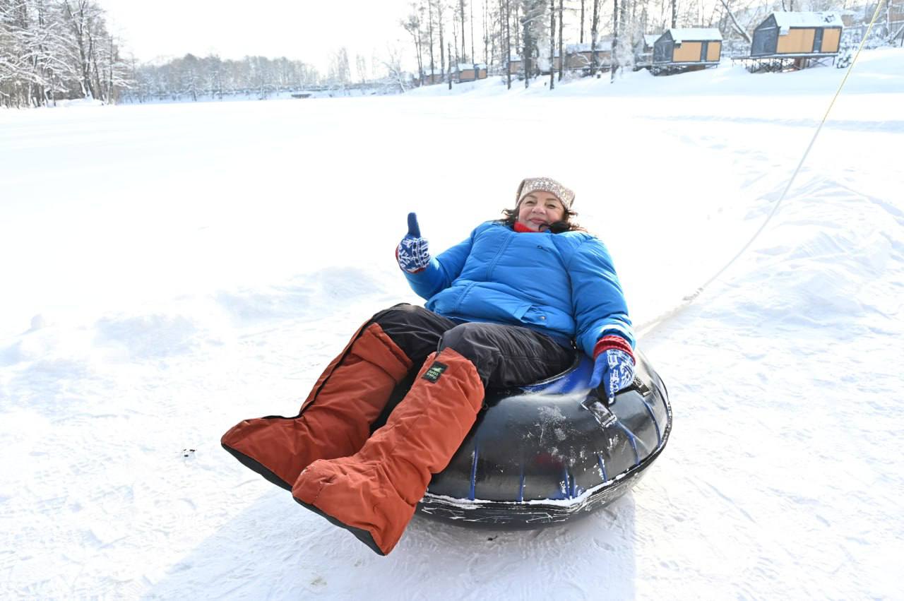 Катание на тюбингах стало центральным элементом программы, позволяющим участникам насладиться зимними развлечениями, атмосферу праздника поддержали теплые напитки и угощения для гостей.